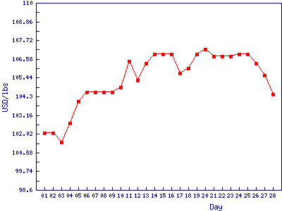 | Common Trading Terms | LTL | The LTL prices refer to the over the scale value of miscellaneous quantities of materials. Less than Truck Load quantity refers to weights of less than 40,000 lbs unless otherwise stated. | TL | TL prices refer to sorted and prepared materials, packaged and ready for shipment in typical Truck Load quantity weights of 40,000 lbs. unless otherwise stipulated. | | Source : ScrapIndex.com | | Date | Price (USD/lbs) | February 01, 2025 | $102.08 | February 02, 2025 | $102.08 | February 03, 2025 | $101.50 | February 04, 2025 | $102.66 | February 05, 2025 | $103.98 | February 06, 2025 | $104.56 | February 07, 2025 | $104.56 | February 08, 2025 | $104.56 | February 09, 2025 | $104.56 | February 10, 2025 | $104.85 | February 11, 2025 | $106.46 | February 12, 2025 | $105.29 | February 13, 2025 | $106.31 | February 14, 2025 | $106.89 | February 15, 2025 | $106.89 | February 16, 2025 | $106.89 | February 17, 2025 | $105.73 | February 18, 2025 | $106.02 | February 19, 2025 | $106.89 | February 20, 2025 | $107.19 | February 21, 2025 | $106.75 | February 22, 2025 | $106.75 | February 23, 2025 | $106.75 | February 24, 2025 | $106.89 | February 25, 2025 | $106.89 | February 26, 2025 | $106.31 | February 27, 2025 | $105.58 | February 28, 2025 | $104.41 | |
